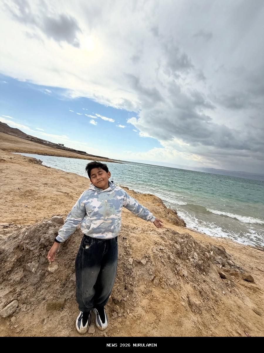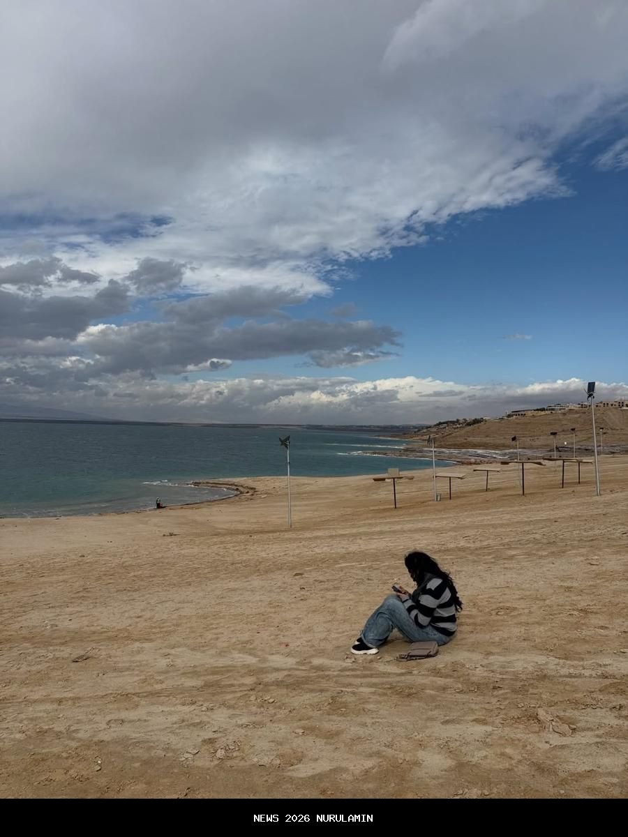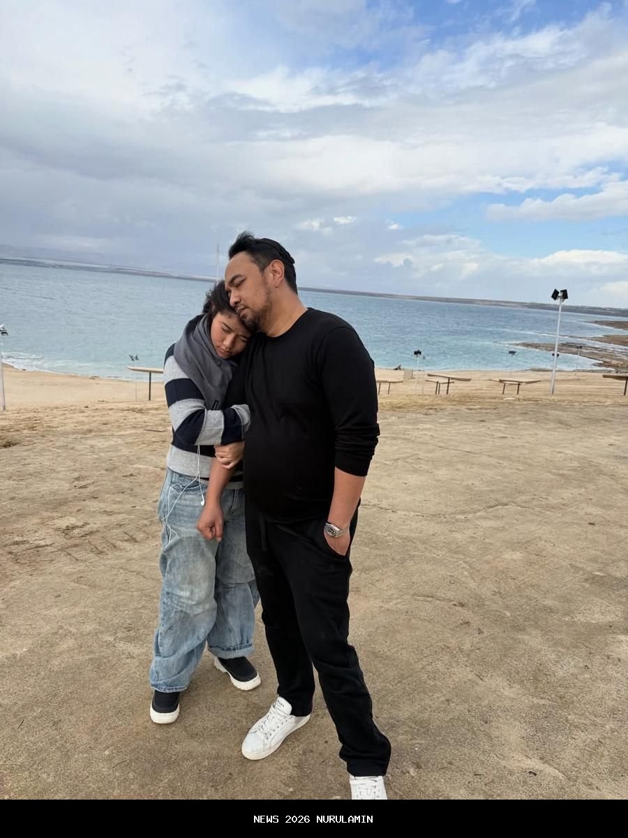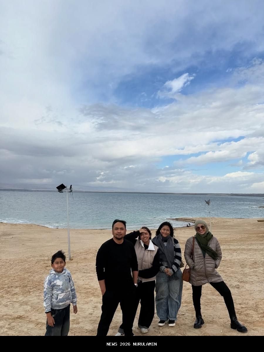 Bebi dan Meisya juga mengajak anak-anak mereka untuk berkunjung ke Laut Mati di sisi timur Yordania. -