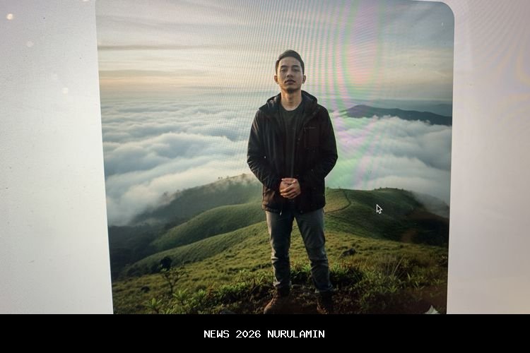 Edit foto ini menjadi potret realistis seseorang berdiri di puncak gunung dengan latar langit biru cerah dan awan tipis. Kenakan jaket gunung berwarna netral dan sepatu hiking, pencahayaan alami matahari pagi yang hangat. Atur pose menghadap sedikit ke kamera dengan tangan di saku, ambil foto full body dari sudut bawah sedikit (low angle). Jangan ubah wajah, dan buat hasilnya sangat realistis seperti diambil dari kamera profesional.