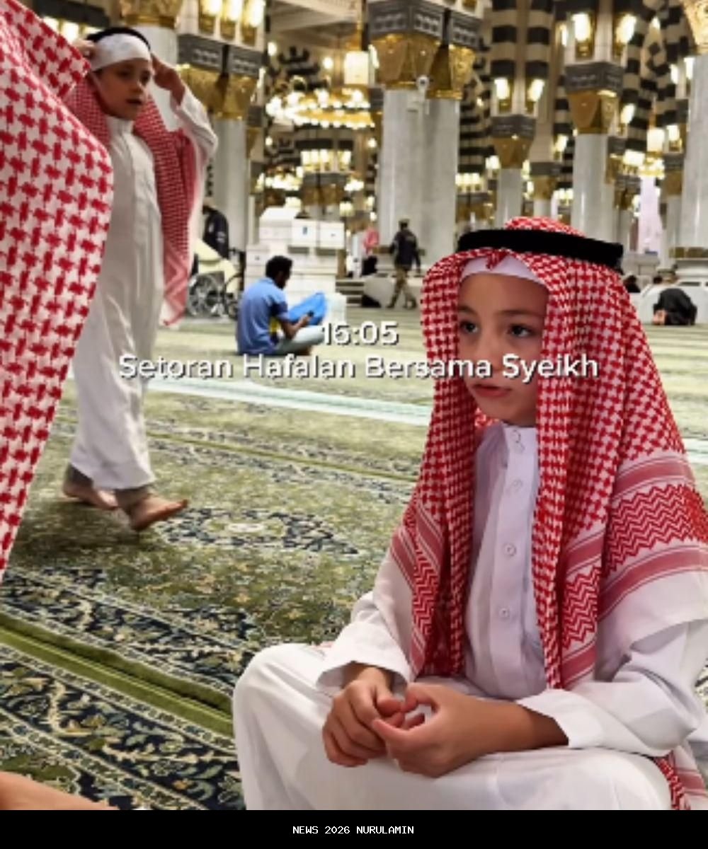 Berikut nurulamin.pro rangkum momen dua anak Celine Evangelista belajar ngaji di Masjid Nabawi nih.