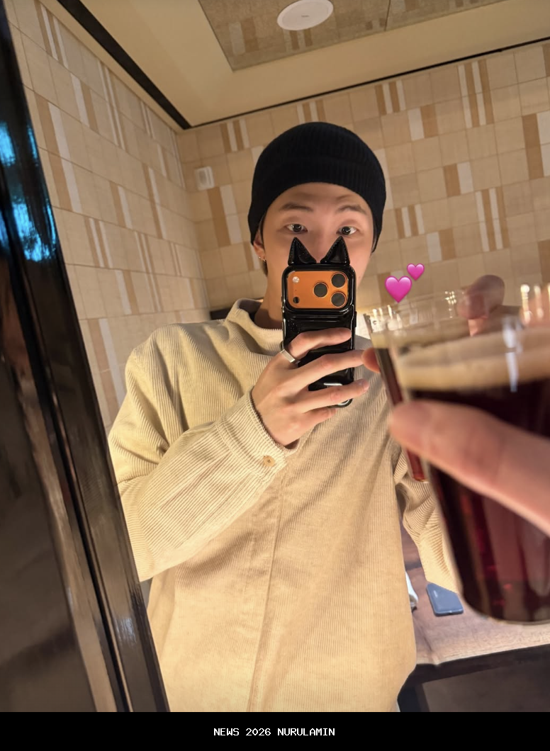 Menjelang malam tahun baru 2026, RM BTS membagikan momen santainya melalui mirror selfie. Kehadirannya dalam momen tersebut memberikan nuansa tenang dan intim kepada penggemarnya.