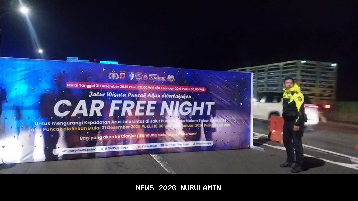 Pengelola lalu lintas dari Satuan Lalu Lintas Polres Bogor mengambil langkah tegas dengan menutup total jalur menuju kawasan wisata Puncak selama pelaksanaan Car Free Night (CFN) pada malam pergantian tahun 2026. Penutupan ini dilakukan untuk memastikan keamanan dan kenyamanan bagi masyarakat serta para wisatawan yang ingin merayakan Tahun Baru 2026.
