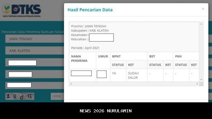 Situs akan menampilkan informasi: - Status penerima BLT Kesra