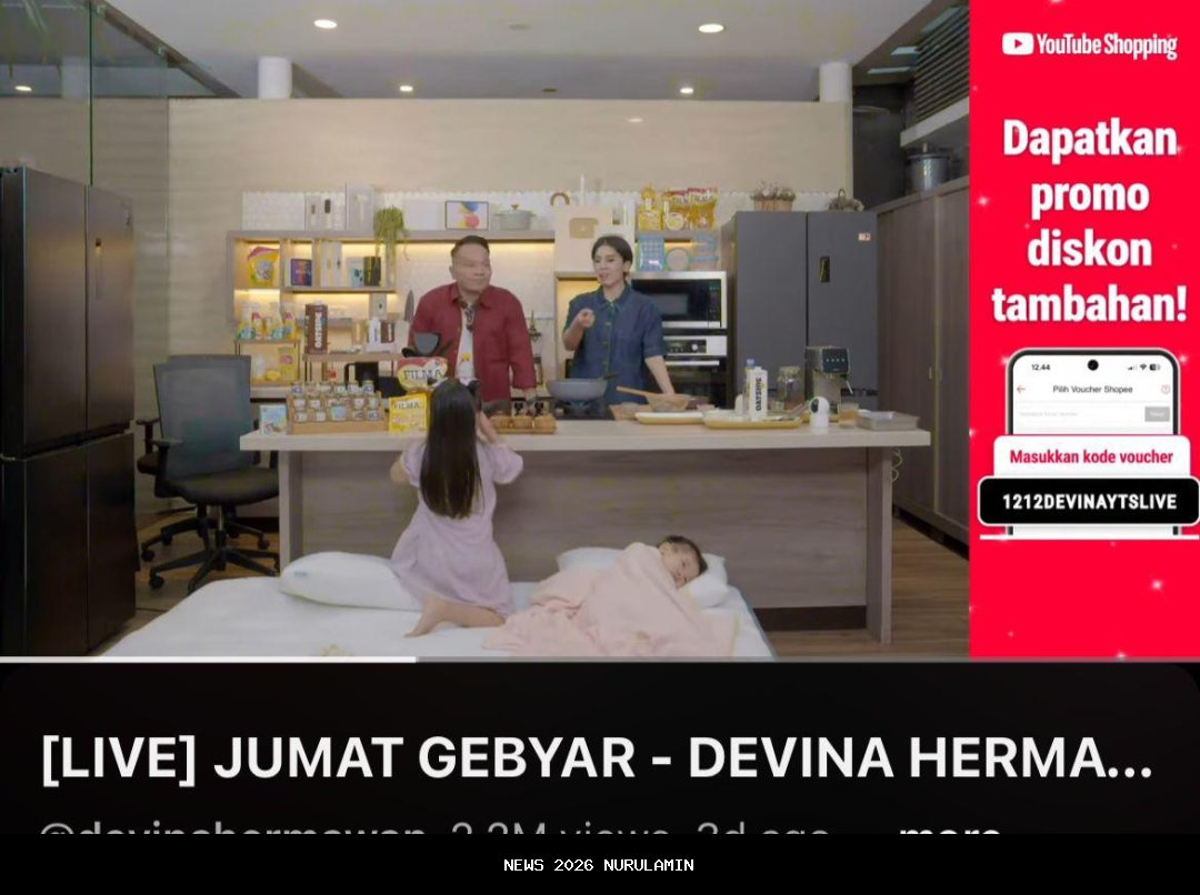 Kota Bandung - Chef Devina Hermawan kembali menghadirkan format konten terbaru yang bertajuk "Jumat Gebyar Devina Hermawan". Episode ketiga dari program ini tayang hari ini, Jumat (12/12/2025), pada pukul 15.00 hingga 21.00 WIB secara live di YouTube.