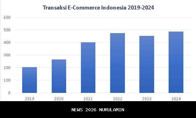Perkembangan marketplace online dalam beberapa tahun terakhir telah mengubah pola konsumsi masyarakat secara signifikan. Kemudahan transaksi, banyaknya pilihan produk, serta efisiensi proses pembelian menjadikan platform digital sebagai sarana utama bagi konsumen dalam memenuhi kebutuhan sehari-hari. Pertumbuhan ini terlihat jelas di Indonesia, yang merupakan salah satu negara dengan tingkat adopsi e-commerce tertinggi di Asia. Peningkatan nilai transaksi e-commerce dari tahun 2019 hingga 2024 sebagaimana ditunjukkan pada Gambar 1 menggambarkan skala ekspansi aktivitas perdagangan digital di dalam negeri.