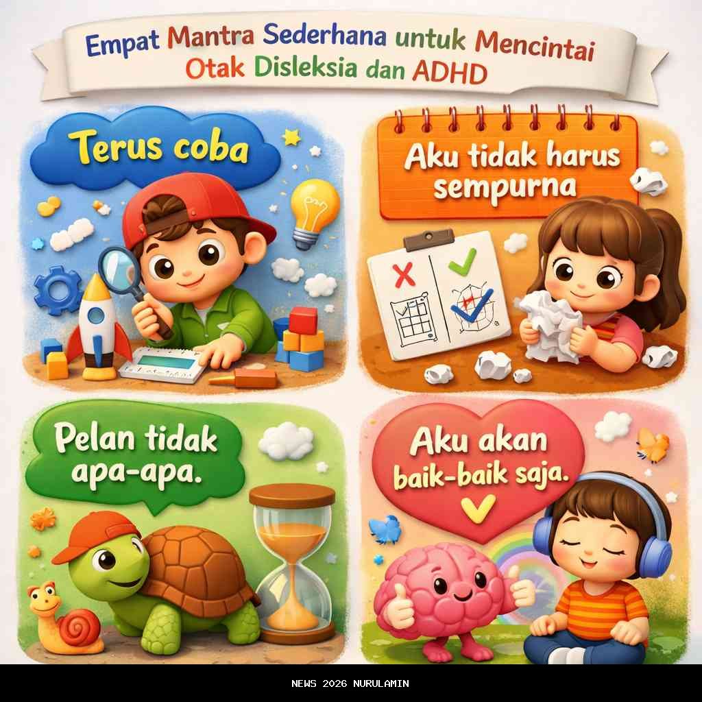 Fakta ini penting, karena terlalu lama kita memandang anak-anak seperti saya dari kacamata defisit, bukan dari sudut pandang keberagaman cara berpikir. Dalam perjalanan berdamai dengan diri sendiri, saya menemukan bahwa yang paling menolong bukan sekadar terapi atau strategi belajar, tetapi kalimat-kalimat sederhana semacam mantra yang saya ucapkan pada diri sendiri ketika pikiran mulai kacau dan kecemasan datang bertubi-tubi.