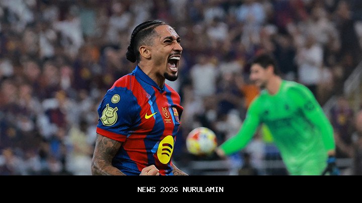 Raphinha tampil gemilang dengan mencetak dua gol saat Barcelona menjuarai Piala Super Spanyol setelah meraih kemenangan dramatis 3-2 atas rival abadi mereka, Real Madrid, pada partai final yang digelar Minggu (11/1) di Stadion King Abdullah Sports City, Jeddah.