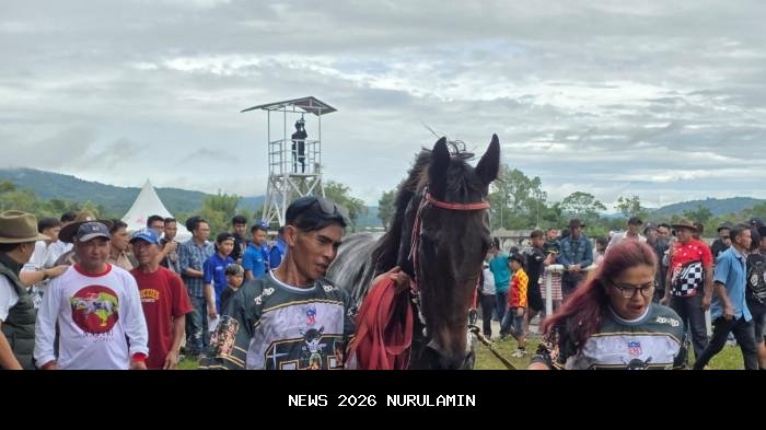 - Lomba digelar di Gelanggang Pacuan Kuda Desa Pinaesaan, Kecamatan Tompaso Barat, Kabupaten Minahasa, Sabtu (3/1/2026).