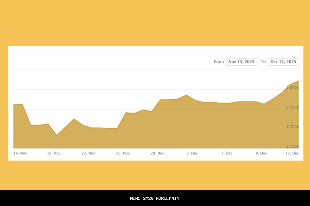 Pada hari Sabtu, 13 Desember, harga emas batangan PT Aneka Tambang Tbk. (Antam) yang terpantau di laman Logam Mulia masih mengalami kenaikan. Hal ini juga berlaku untuk harga beli kembali (buy back). Sementara itu, pada laman Galeri 24 Pegadaian, harga jual emas batangan PT Antam hari ini tidak mengalami perubahan. Begitu pula dengan harga beli kembali.