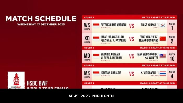 Berikut adalah jadwal lengkap pertandingan BWF World Tour Finals 2025: