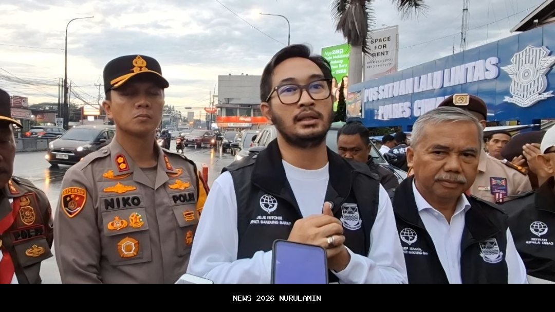 Bupati Bandung Barat, Jeje Ritchie Ismail, bersama Wakil Bupati Asep Ismail dan Kapolres Cimahi AKBP Niko Narullah Adi Putra melakukan pemantauan langsung arus lalu lintas di Posko Utama Padalarang, Kabupaten Bandung Barat (KBB), Jawa Barat, pada Rabu pagi, 31 Desember 2025. Kegiatan ini juga dihadiri oleh sejumlah pejabat penting seperti Kepala Dinas Perhubungan KBB Mochamad Ridwan Evi, Kepala Satpol PP Ludi Awaludin, serta Kepala BPBD Asep Sehabudin dan seluruh petugas gabungan TNI-Polri.