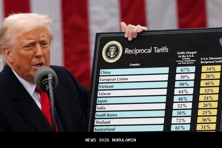 Presiden Donald Trump mengumumkan rencana penerapan tarif resiprokal terhadap 14 negara di dunia, termasuk Indonesia. Tarif tersebut akan diberlakukan mulai Agustus 2025 dengan besaran sebesar 32 persen untuk produk ekspor Indonesia ke Amerika Serikat. Selain Indonesia, ada 13 negara lain yang juga akan dikenakan tarif serupa, seperti Jepang, Korea Selatan, Malaysia, Kazakhstan, Afrika Selatan, Myanmar, Bosnia dan Herzegovina, Tunisia, Bangladesh, Serbia, Kamboja, dan Thailand.