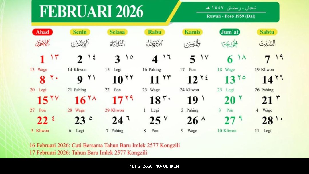 Sementara itu, berdasarkan kalender Kementerian Agama (Kemenag), jadwal Puasa Ramadhan 2026 jatuh pada Kamis, 19 Februari 2026. Dikutip dari kalender hijriah yang dirilis oleh Kemenag Aceh, Idul Fitri 1447 H jatuh pada Sabtu, 21 Maret 2026.