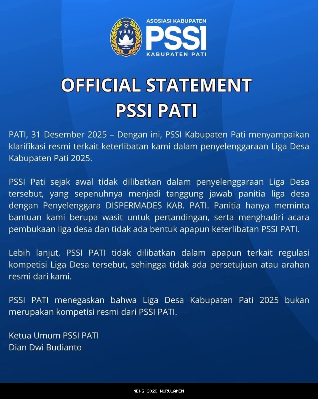 Pernyataan Pihak Askab PSSI Pati