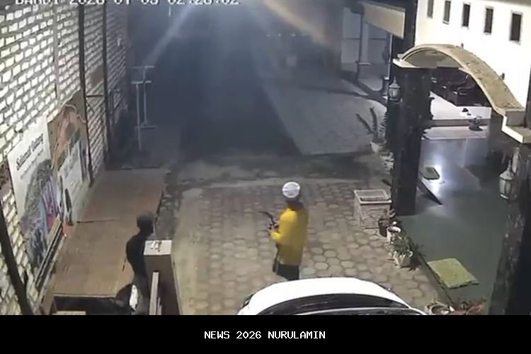 Dua orang itu terekam CCTV tidak memakai alas kaki. Keduanya memegang celurit dengan terbuka pada pukul 02.25 pada Jumat (9/1/2026) dini hari.