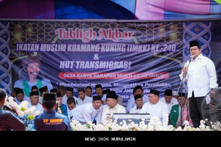Wakil Menteri Transmigrasi (Wamentrans) Viva Yoga Mauladi mengunjungi Kawasan Transmigrasi Kuamang Kuning di Lapangan Desa Karya Harapan Mukti, Kecamatan Pelepat Ilir, Kabupaten Bungo, Provinsi Jambi, pada hari Minggu (7/12/2025). Acara ini berlangsung dengan antusiasme yang tinggi, dengan ribuan warga memadati lapangan untuk menyambut kedatangan Wamentrans.