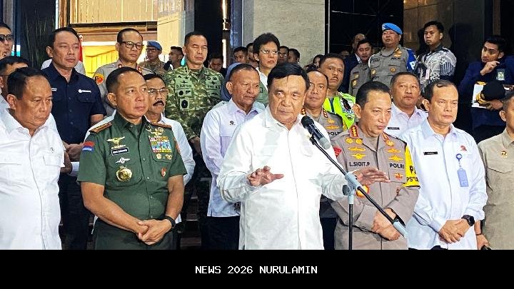 Menteri Koordinator Bidang Politik dan Keamanan, Djamari Chaniago, bersama dengan Kapolri Jenderal Listyo Sigit Prabowo dan Panglima TNI Jenderal Agus Subiyanto melakukan telekonferensi untuk memastikan perayaan malam tahun baru 2026 berjalan aman dan lancar. Pemantauan ini dilakukan di Gedung Promoter Polda Metro Jaya pada Rabu malam, 31 Desember 2025.