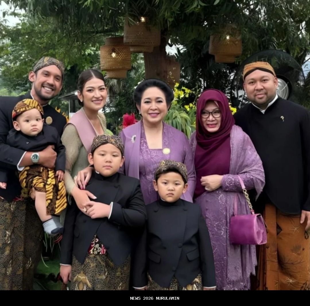 Selain itu, dalam unggahan foto lain terlihat juga putra Prabowo dan Titiek Soeharto, Didiet Prasetyo. Ia tampil gagah mengenakan beskap hitam dipadu jarik cokelat dan blangkon.