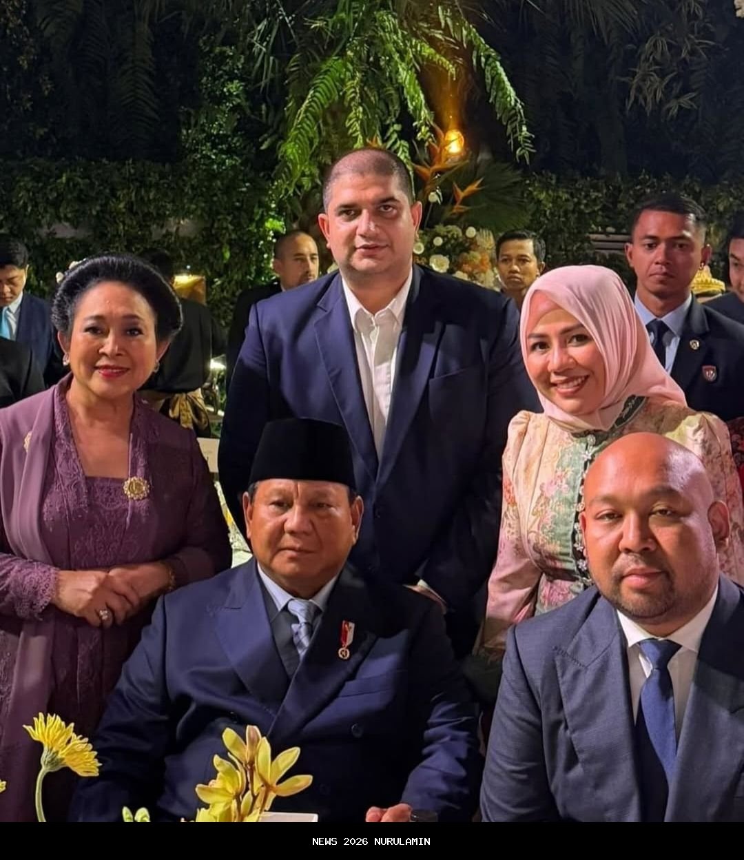 Hadir pula Prabowo Subianto yang tampak berwibawa mengenakan setelan jas berwarna biru tua lengkap dengan peci hitam. Dalam salah satu foto yang beredar, Prabowo dan Titiek terlihat berfoto bersama dengan para tamu undangan lainnya.