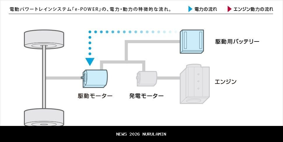 Secara spesifik, e-POWER terbaru yang digunakan di Nissan Note di Jepang bisa menjadi solusi yang tepat. Penggerak utama e-POWER ini adalah motor listrik dengan daya 85 kW atau 114 dk dan torsi puncak 280 Nm. Motor ini didukung oleh mesin sebagai generator berkapasitas 1.198 cc yang menghasilkan daya sebesar 60 kW atau 80 dk dan torsi 103 Nm.