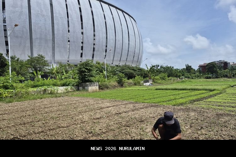 Keberadaan pertanian sayur itu menghadirkan pemandangan kontras dengan megahnya stadion berstandar internasional, menciptakan suasana yang menyerupai pedesaan di tengah hiruk-pikuk kota, meski panas matahari Jakarta Utara tetap terasa menyengat.