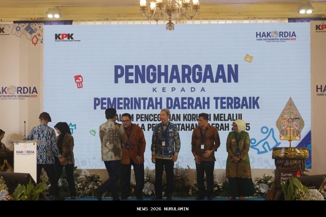 Piagam penghargaan diserahkan langsung oleh Pimpinan KPK, Johanis Tanak, kepada Wakil Gubernur (Wagub) DKI Jakarta, Rano Karno, dalam rangkaian peringatan Hari Antikorupsi Sedunia (Hakordia) 2025 di Bangsal Utama Kepatihan, Kompleks Kantor Gubernur Daerah Istimewa Yogyakarta, pada Selasa (9/12).