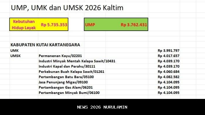 Berikut perbandingan UMP, UMK, dan UMSK 2026 Kaltim dengan Kebutuhan Hidup Layak: