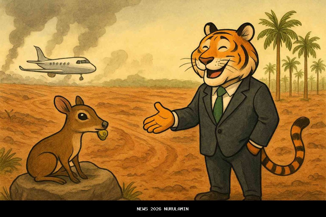 Harimau mengangkat bahu, seolah-olah itu hal biasa. "Bukan jual, Kancil. Ini strategic land reallocation. Biar bisa jadi global green ambassador. Kalau hutan kita ditanami pohon lagi, mana bisa kita foto bareng presiden Brasil sambil tersenyum di depan latar belakang sawit yang rapi-rapi? Itu namanya image building."