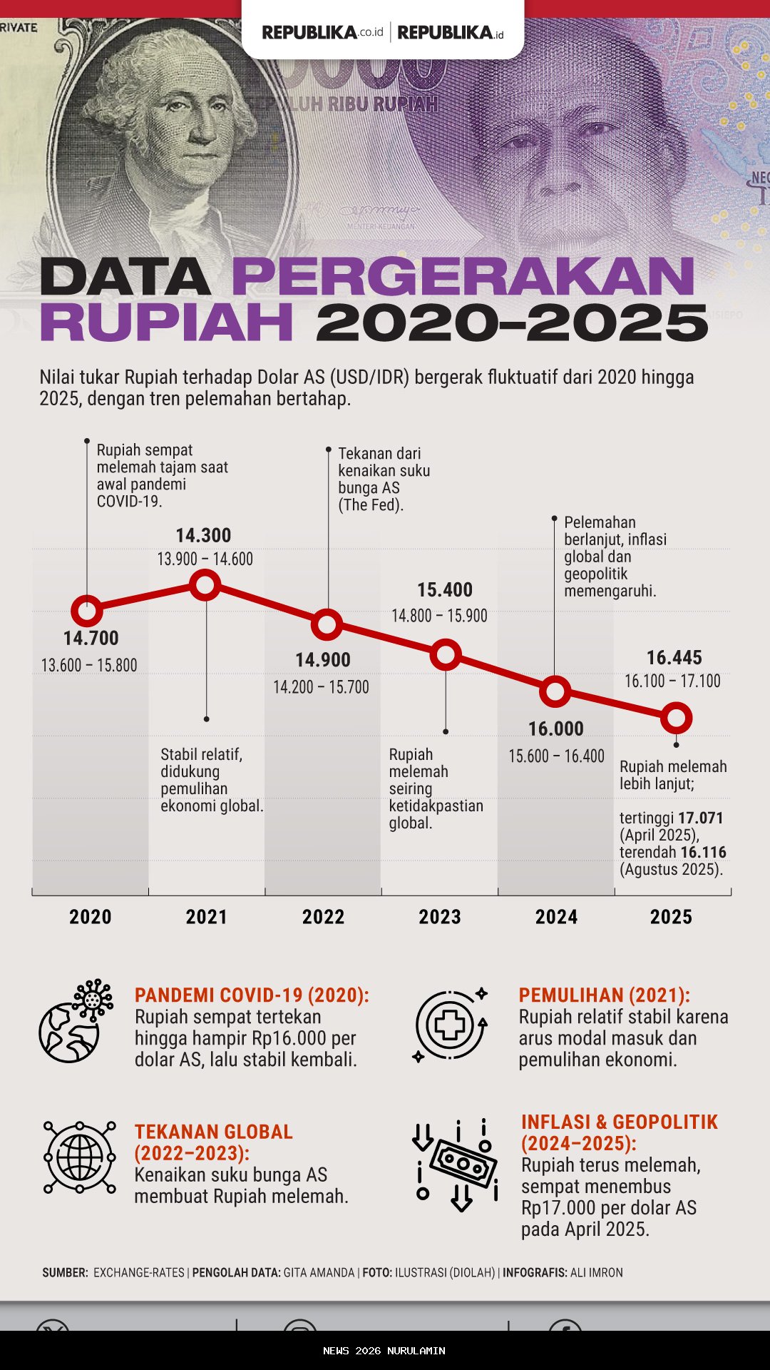 Data pergerakan rupiah dari tahun 2020 sampai 2025. - (nurulamin.pro.co.id)