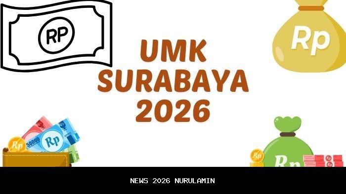 Pemerintah Provinsi Jawa Timur telah menetapkan Upah Minimum Kabupaten/Kota (UMK) Surabaya untuk tahun 2026 sebesar Rp 5.288.796. Keputusan ini diambil berdasarkan Keputusan Gubernur Jawa Timur Nomor 100.3.3.1/937/013/2025 tentang UMK di Jawa Timur Tahun 2026. Penetapan ini tidak hanya berlaku untuk Surabaya, tetapi juga untuk 37 kabupaten/kota lainnya di wilayah Jatim.