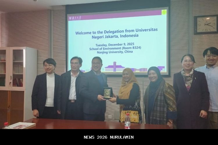 Delegasi UNJ terdiri dari Manajer Urusan Kerjasama Internasional, Mutia Delina dan Sekretaris Kantor Internasional, Sri Rahayu melakukan pertemuan penting dengan School of Environment Nanjing University (Sekolah Lingkungan Universitas Nanjing) pada 9 Desember 2025.