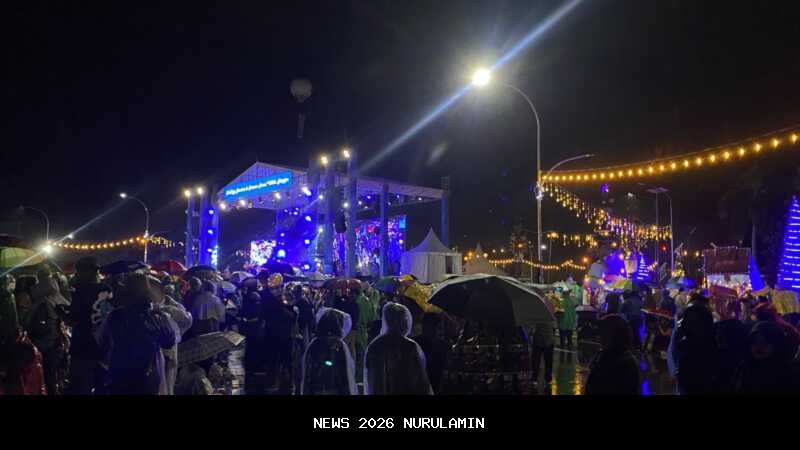 Kegiatan Kalimantan Tengah (Kalteng) Berdoa dan Konser Amal untuk Bangsa yang diselenggarakan oleh Pemerintah Provinsi (Pemprov) di Bundaran Besar Palangka Raya, Rabu (31/12/2025) malam, berjalan dengan khidmat meskipun diguyur hujan.